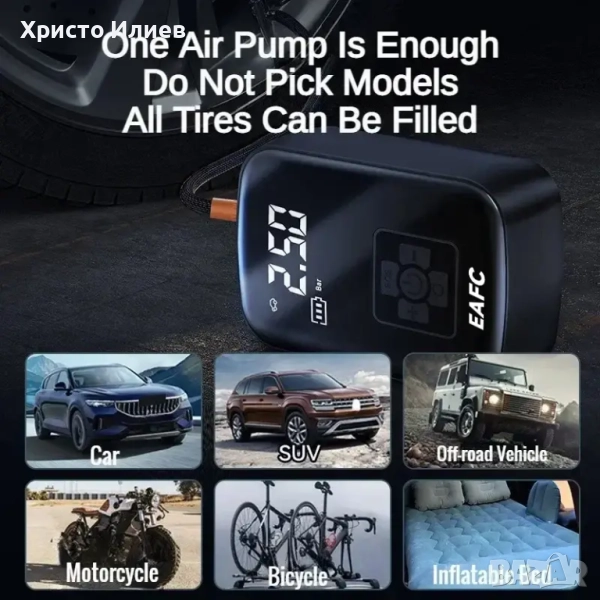 Нашето предложение е перфектно за всеки шофьор, къмпингуващ или любител на открити забавления, който цени удобството, безопасността и ефективността. Преносимият компресор за гуми с вградена батерия е вашият надежден партньор във всички пътешествия и приключения.