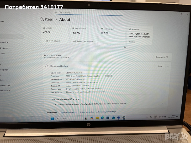 Продавам лаптоп модел HP ProBook 455 G9 → Обява 51578736