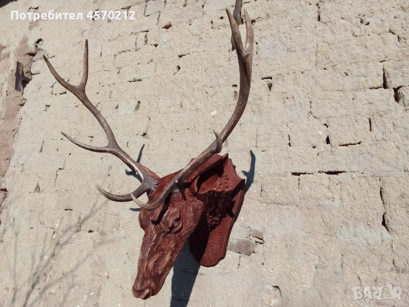 Ловен трофей от благороден елен, подходящ за украса на механа или друго по-голямо помещение.