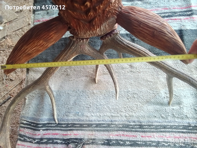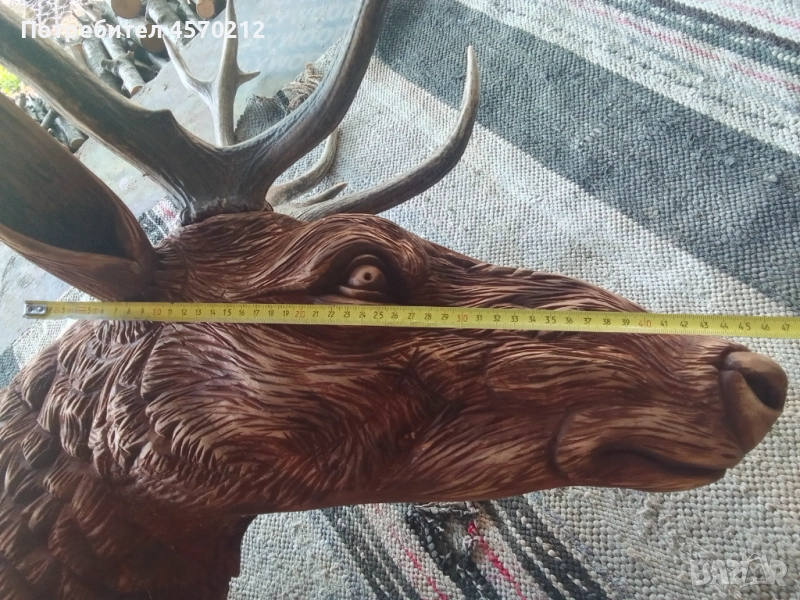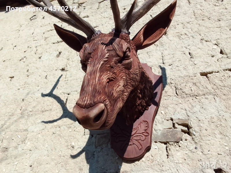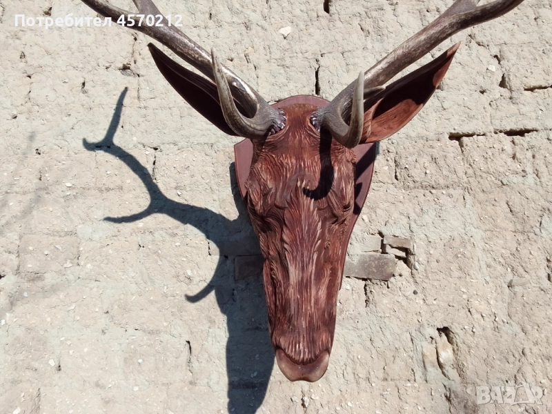 Ловен трофей от благороден елен, Поставка за еленски рога, Дърворезба за механа, Подарък за ловец