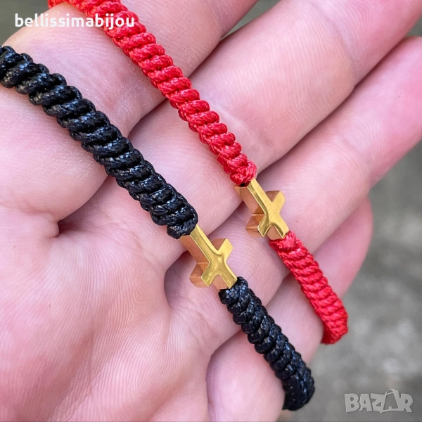 Мъжка Черна Плетена Гривна със Стоманен Кръст → Обява 51579153