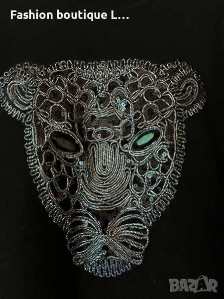 Дамска черна блуза с нашивка тигър и пайети М размер на марката MOHITO 🖤🖤🖤 → Обява 51579252