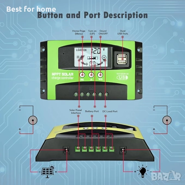 【ВКЛЮЧИ И ПУСКАЙ】Този контролер за зареждане е 12V/24V и се адаптира автоматично. Първо свържете батерията, след това свържете слънчевите панели. Когато го използвате за първи път, уверете се, че батерията е достатъчно заредена, за да може MPPT контролерът за зареждане да разпознае правилния тип батерия.