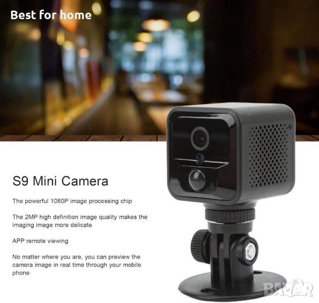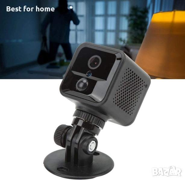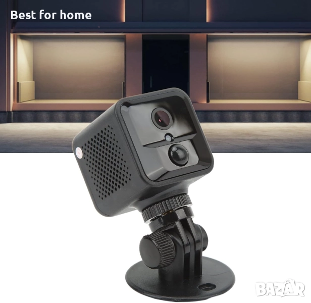 Различни методи за монтаж: Мини камерата може да се постави навсякъде без монтаж. Тя не заема място и може да се постави с главата надолу, да се монтира на стена и да се използва по друг начин.