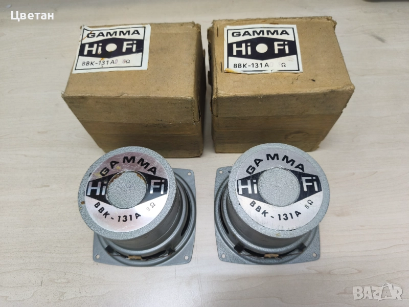 Продавам средночестотни високоговорители Gamma BBK-131A 8 ohm с отворен корпус. Ако ще се използват в широколентов режим е хубаво да им се направи профилактика, поради годините им.