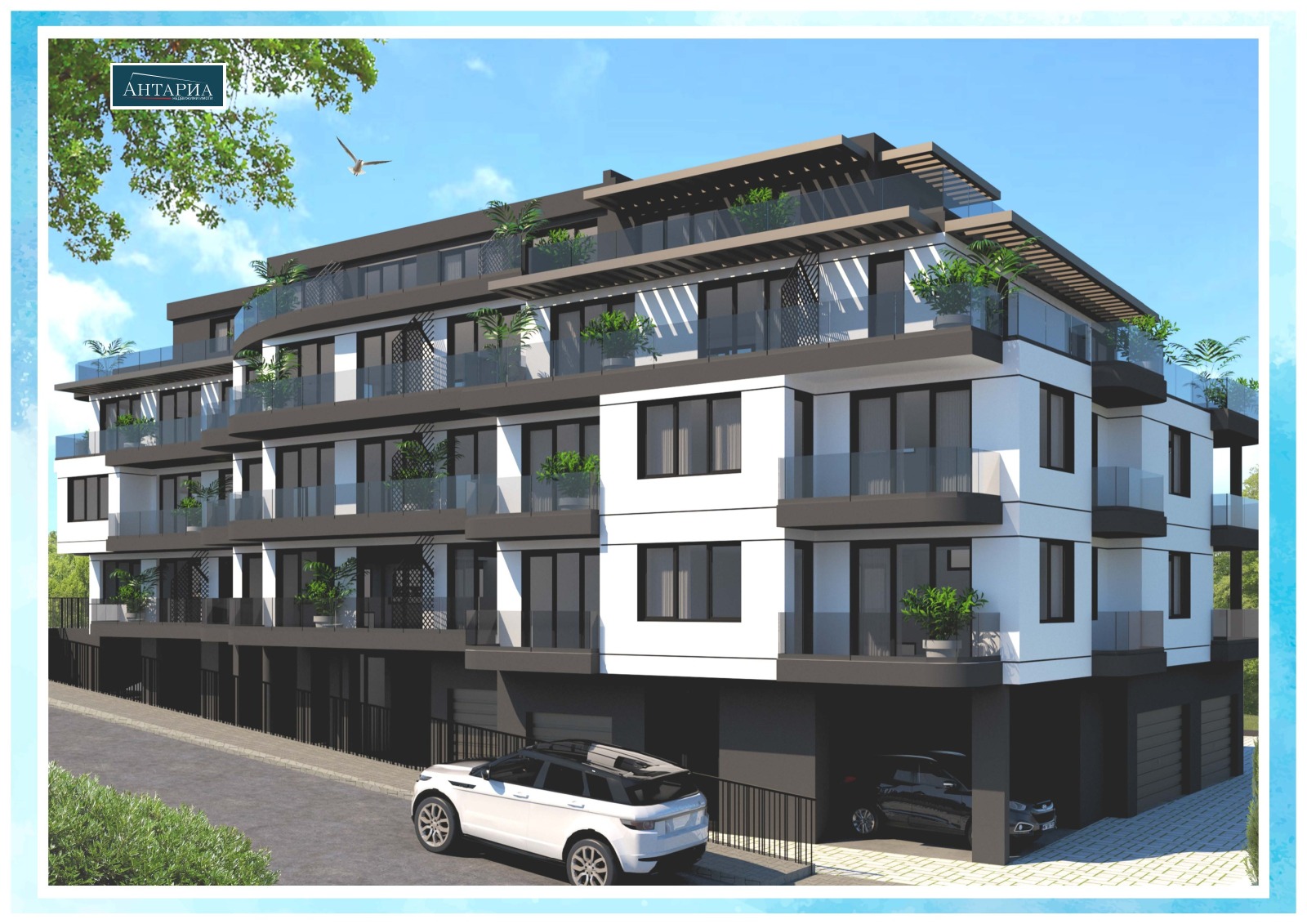 Без комисиона от купувача. Нова жилищна сграда, на минути пешеходно разстояние до централния плаж. Сградата е проектирана с четири жилищни етажа, един полуподземен етаж с гаражи и сутеренен етаж със складови помещения. В обявената цена апартаментите се предават без довършителни работи, в степен на завършеност - шпакловка и замазка. Има възможност, при допълнително заплащане, жилището да бъде завършено с подови настилки и поставени фаянс и теракота в банята. Апартамент В 5/6 е на първи (партерен) етаж, разпределението включва антре, дневна с кухненски бокс, спалня, баня с тоалетна и два балкона. Към апартамента има прилежащи две складови помещения. Срок за въвеждане на сградата в експлоатация: 05.2026г.