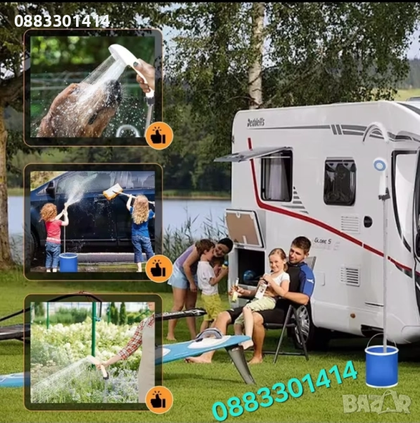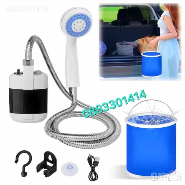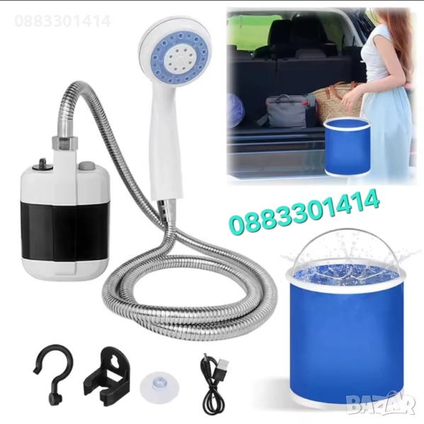 Временно намаление! 39,99лв!Практично решение за баня на открито! Преносимият душ е идеален за къмпинг, плаж, градина или пътуване. Лек, удобен и лесен за използване – просто потапяте помпата в съд с вода и се наслаждавате на освежаващ душ.