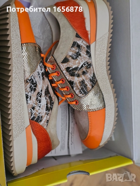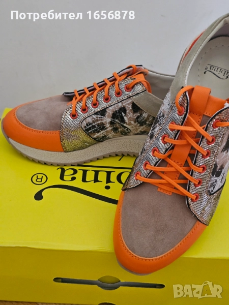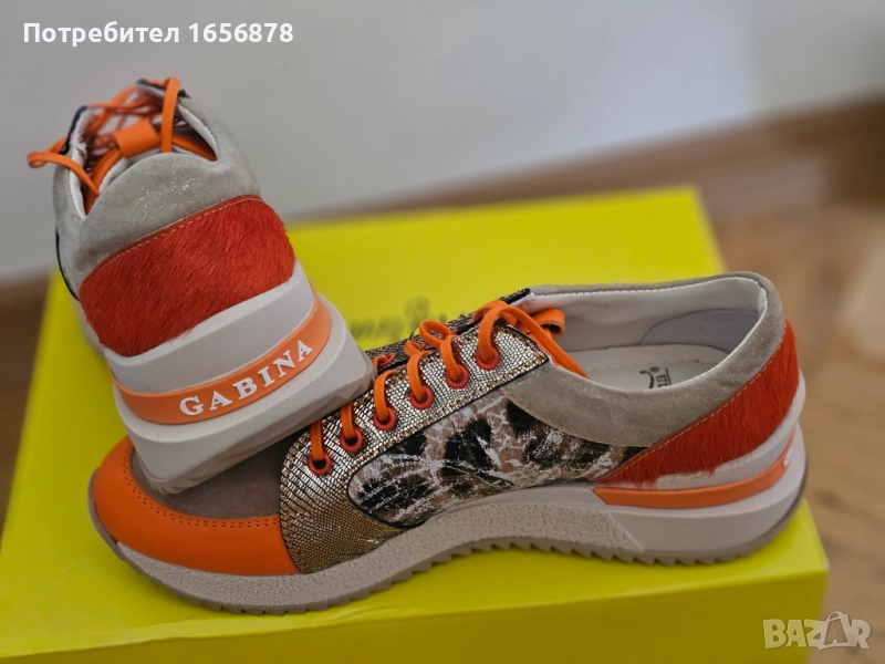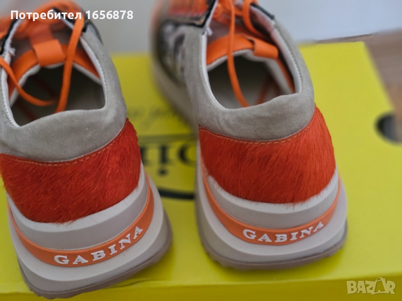 Обувки от естествена кожа Gabina в размер 38, цвят оранжев. Обувките са нови,много оригинален модел, но така и не успях да ги съчетая с гардероба си. Подходящи за различни сезони.