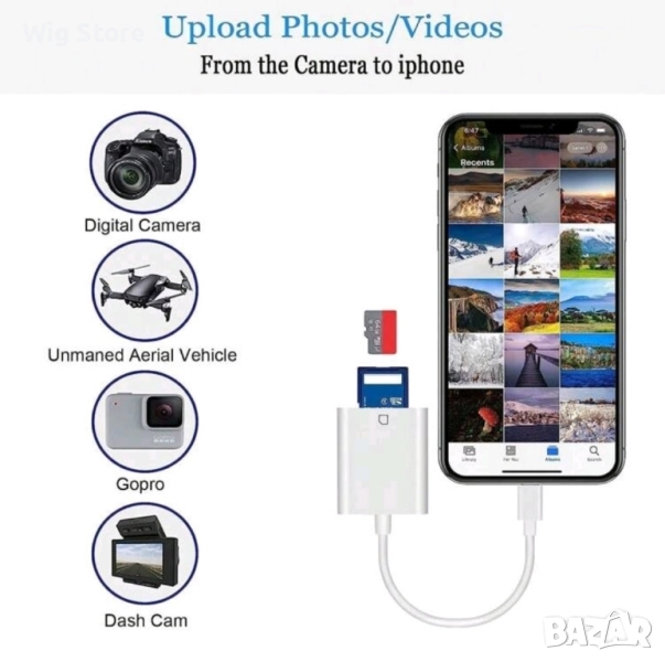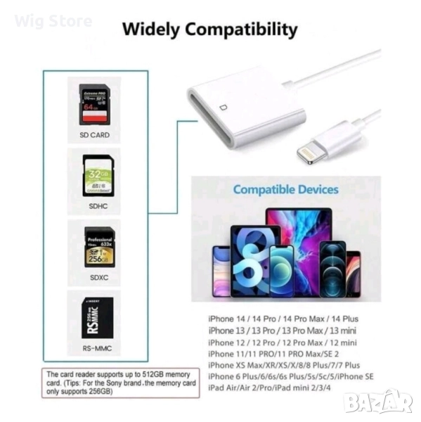 Четец за карти и адаптер за преглед съвместим с iPhone,Samsung и др → Обява 51580998