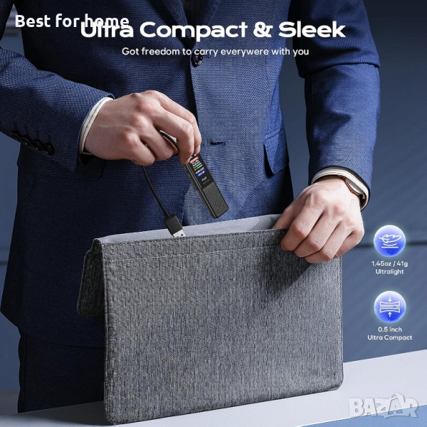 Ултракомпактен дизайн: Това диктофонно устройство има елегантен и уникален дизайн, с еднокомпонентна отливка от цинкова сплав, която пасва удобно в ръката ви и е лесна за носене в джоб или малка чанта. Бутонът за запис с едно докосване е проектиран да позволява на потребителите да започнат или спрат записа незабавно, като пропуснат времето за чакане за включване на рекордера и реагират на вашите нужди от запис своевременно.