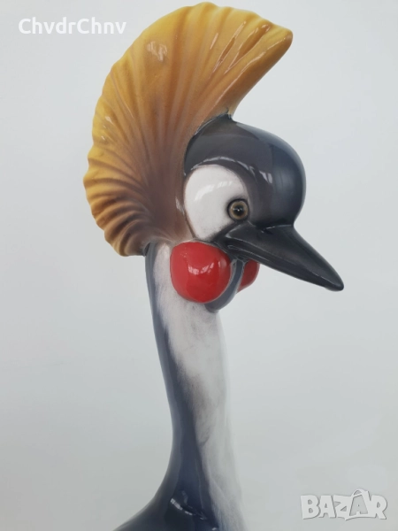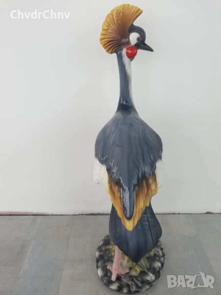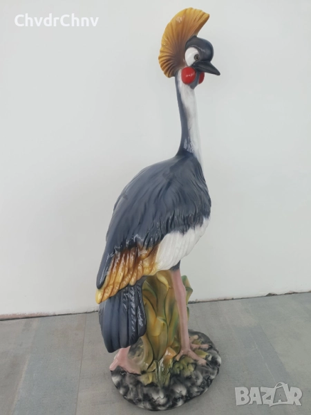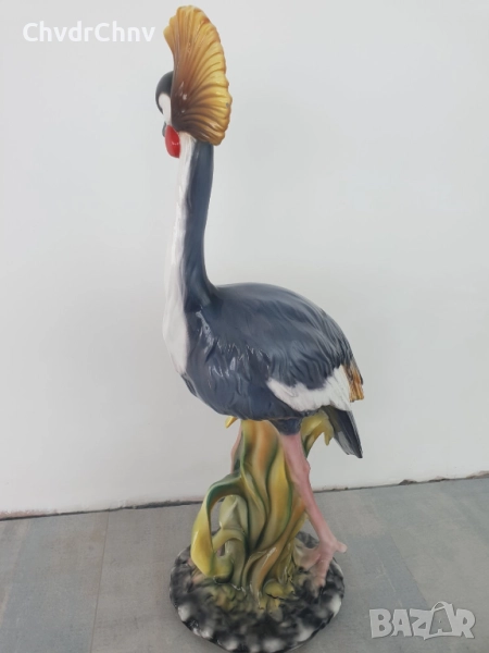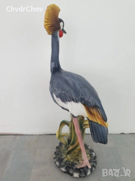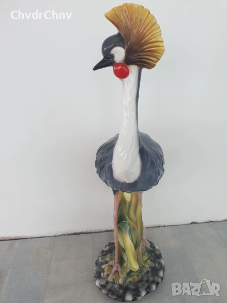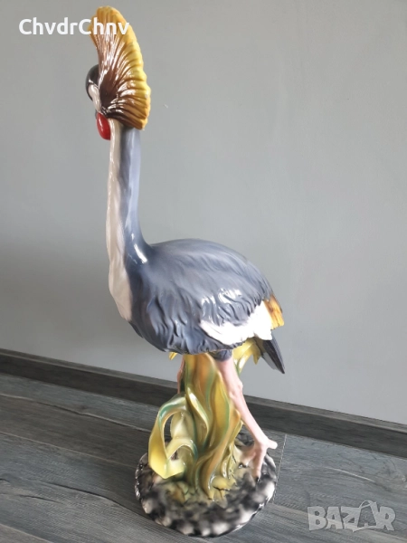 Сив кралски жерав статуетка 83см-5кг/голяма италианска порцеланова фигура на птица