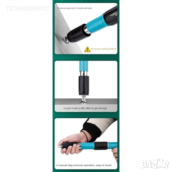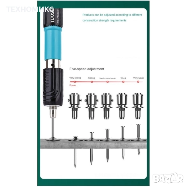 Ръчния мини пистолет е изключително компактен и лек, което го прави лесен за използване и пренасяне, особено за домашни проекти и ремонти. Със своята точност и прецизност, този пистолет ви позволява да постигнете стабилно и здраво закрепване на пироните без излишни усилия. Ергономичният дизайн на дръжката осигурява комфорт и контрол при работа, като ви позволява да работите продължително време без умора. Подходящ за различни видове проекти - от домашни подобрения и ремонти до изработка на мебели и дървени конструкции.