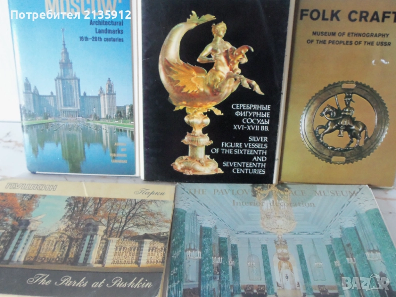 3.Москва, архитектурни паметници 3лв, Москва, Кремъл, Оръжейна палата-Серебряные фигурые сосуды -22картички, 5лв, Ленинград-музей этнографии 3лв, Павловский дворец-музей 5лв, город Пушкин-парки 3лв.