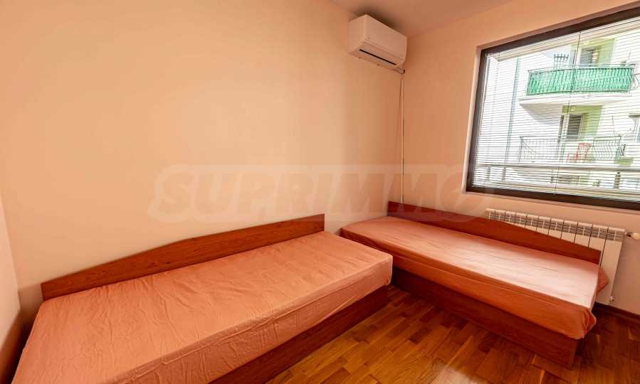 тоалетни, от които едната е с баня и 3 тераси, като всяка стая има достъп до тераса. Една от трите спални е оставена необзаведена, като ще бъде обзаведена спряма предпочитанията на наемателите.