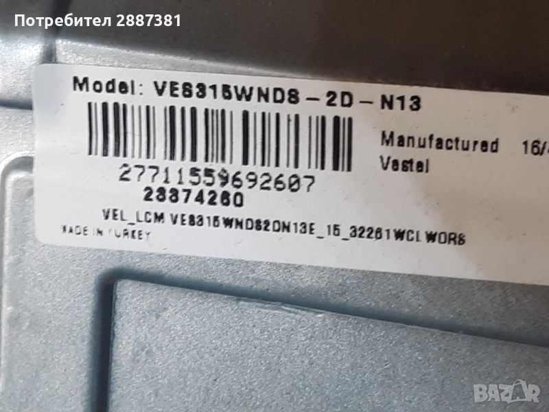 Telefunken D32H281X4 дефектен дисплей VES315WNDS-2D-N13