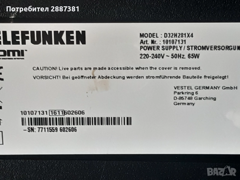 Telefunken D32H281X4 на части 17МБ110 17IPS62 → Обява 51583262