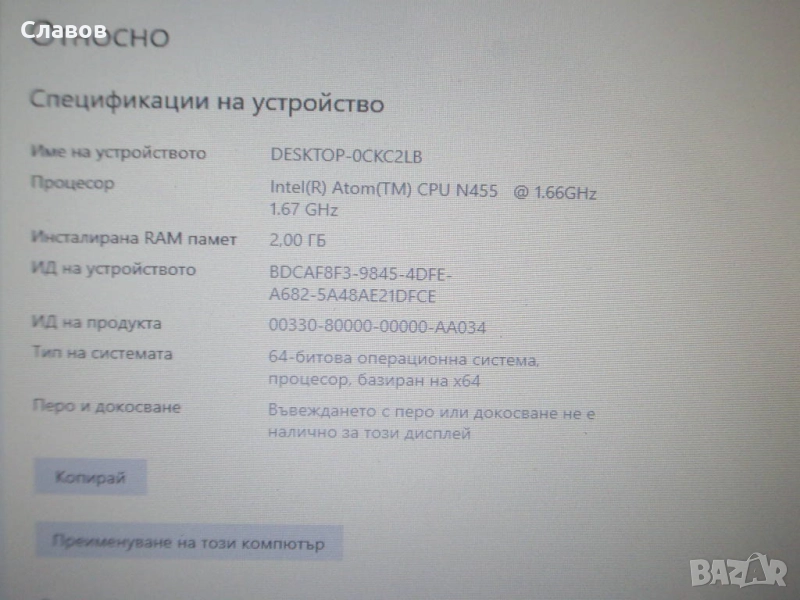 Ултрапреносим, 10.1-инчов екран (26 cm), резолюция 1024 x 600 (нова матрица e ~130 лв);