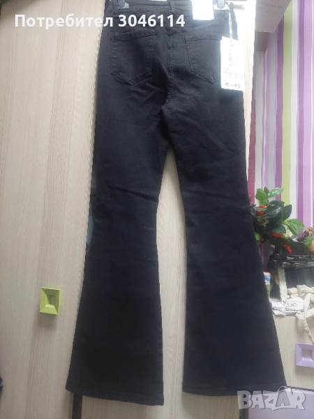 чисто ново черно дънки еластично висока талия 27номер дълго 99см изнереноот външната страна
