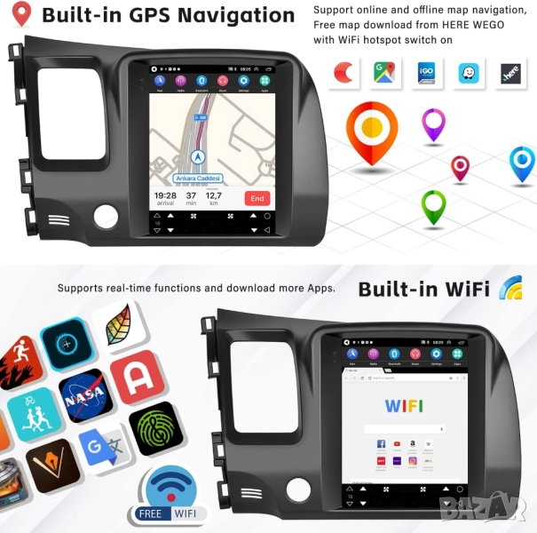 Поддържа всички навигации, съвместими с Android: IGO, WAZE, GOOGLE Maps и други