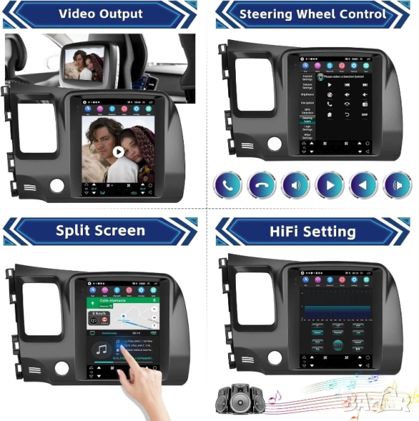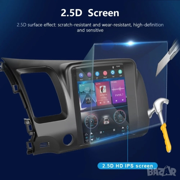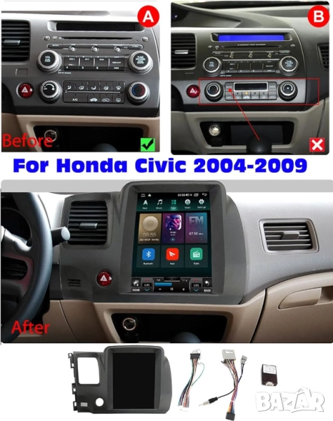 Мултимедия, 9.7", Двоен дин, за Honda Civic, Андроид, навигация, 2 Дин Хонда, плеър, с Android