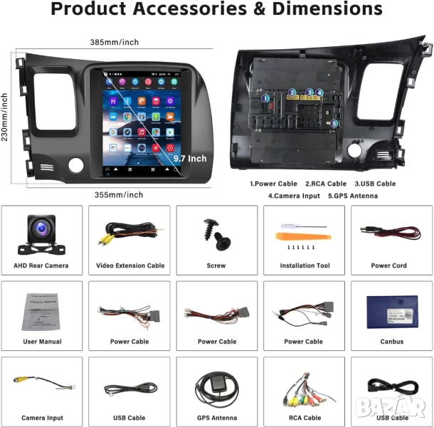 Супер промоционална цена! Директно от вносител. В наличност. Пълен комплект, готов за монтиране. Включена е и качествена водоустойчива камера с висока AHD резолюция и широк ъгъл на видимост. Също така е включен 6-метров кабел към нея в комплекта! По ваше желание може да добавите и втора предна камера.