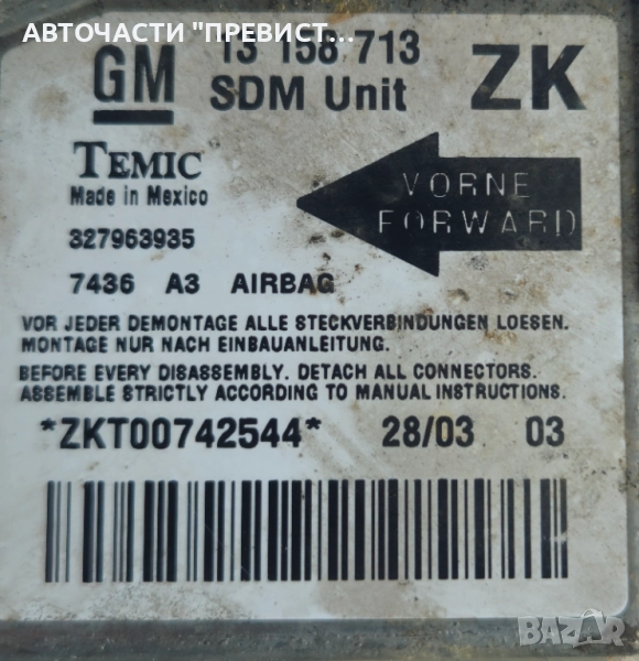 Airbag модул Опел Мерива А Opel Meriva A 13158713 2003 г, снимка 1 - Части - 51585227 Airbag модул Опел Мерива А Opel Meriva A 13158713 2003 г, снимка 2 - Части - 51585227 1/2