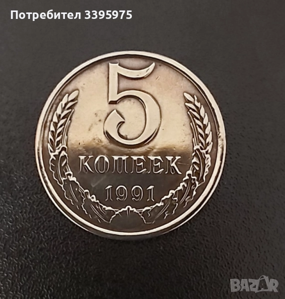 Продавам рядка монета от епохата на СССР - 5 копейки 1991 г. с буквата ”L” (Ленинградски монетен двор).