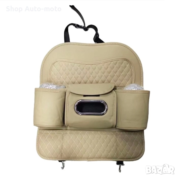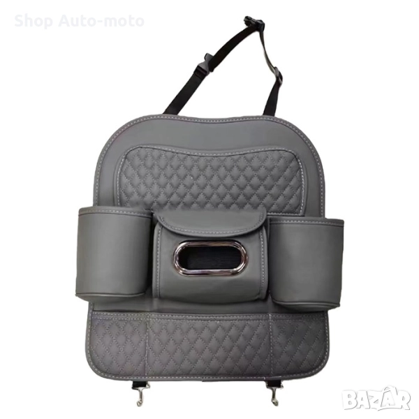 Практичен и стилен органайзер за автомобилна седалка, изработен от висококачествена изкуствена кожа, който осигурява удобство и подреденост по време на пътуване. С 7 функционални отделения разполагате с достатъчно място за съхранение на всички необходими аксесоари.
