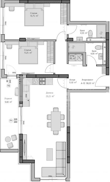 Монолитна стоманено-бетонна конструкция, енергийно ефективни тухли, висококачествена алуминиева дограма, топлоизолация с каменна вата