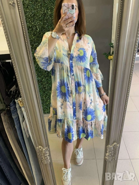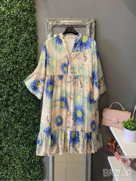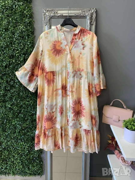Дамски рокли със свеж флорален десен Свободна кройка Универсал, подходящи от М до ХЛ ГО до 108см. 55лв Доставка с Еконт до 4 работни дни