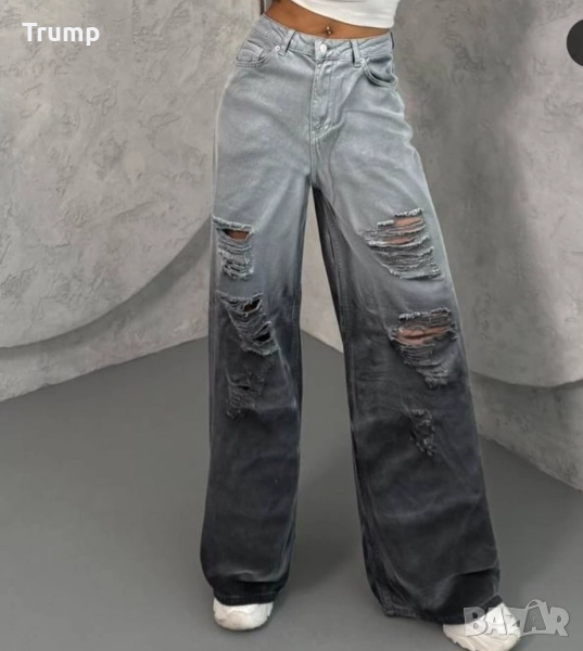 Ефектни дънки Преливащи от черно към сребърно, накъсан ефект, деним → Обява 51586827