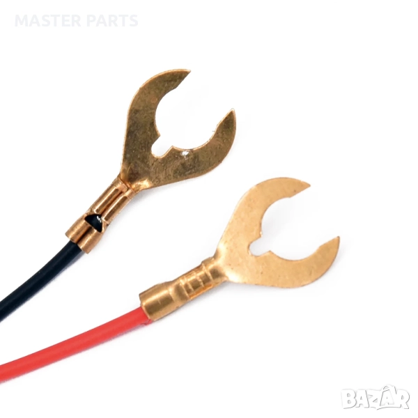 • Изход: Червен (+) и черен (-) кабел – към съответните полюси на дневните светлини.