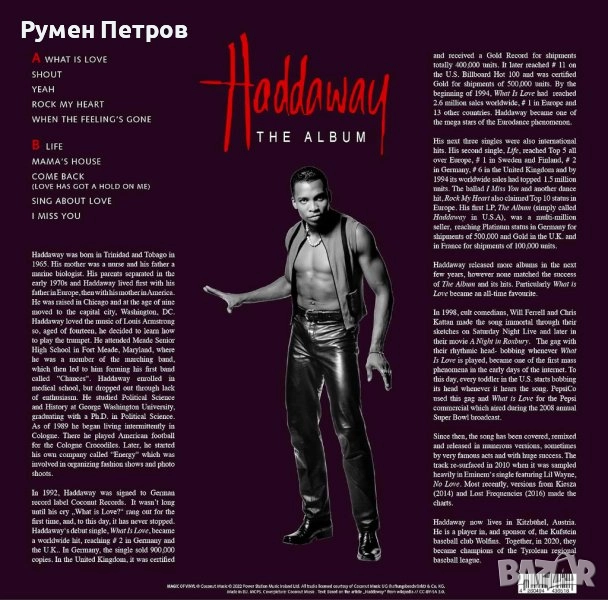 Продавам чисто нова неупотребявана грамофонна плоча с албума на световноизвестния HADDAWAY - The Album - Limited Edition GOLD VINYL - лимитирано колекционерско издание - 180 грама златен цветен прозрачен винил