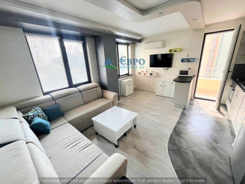 TWO-ROOM, LUXURY and NEW, FURNISHED APARTMENT, close to the MEDICAL FACULTY and ORB area in a new building. LIVING ROOM with kitchenette and built-in kitchen with appliances, air conditioning and access to a terrace, equipped BEDROOM, BATHROOM with shower cabin, hallway and one terrace. Kitchenette equipped with built-in electrical appliances: oven with ceramic hob, refrigerator with freezer, washing machine, dryer. BUILDING with luxurious common areas, elevator and regulated access. FULL INFORMATION on phone: +359895625545 and in the office at 106 Hristo Botev Str. - ground floor (please, notify us of your arrival on the specified phone number, all meetings with clients are organized in a schedule). Ad code: 0722