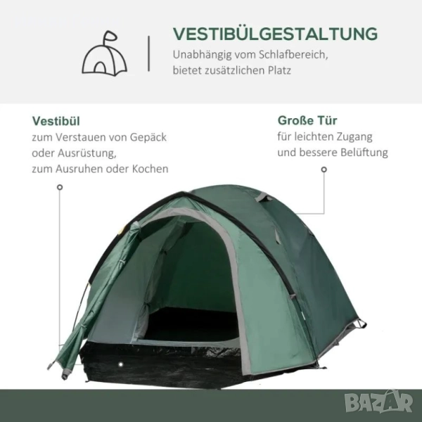Къмпинг палатка Outsunny за 2 души, мрежести отвори, кука за лампа, чанта за носене - 120.00лв.