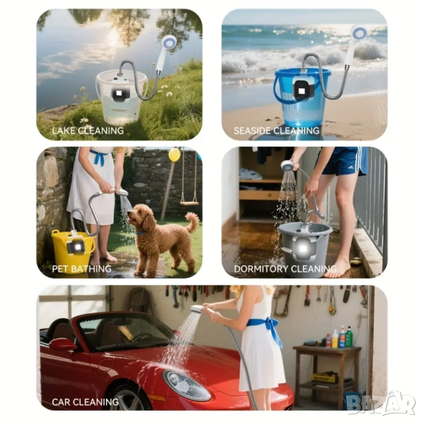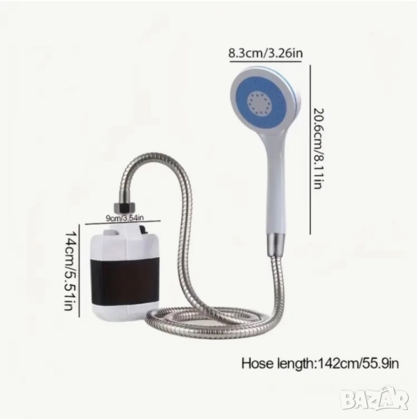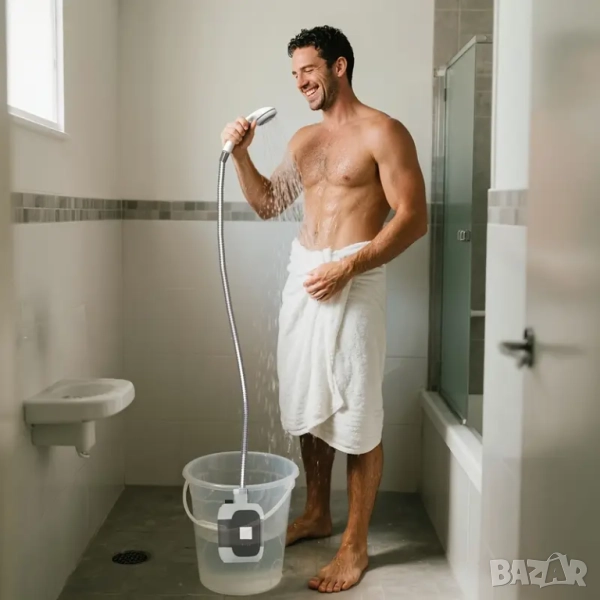 Преносим душ с USB помпа - Без необходимост от монтаж → Обява 51588357