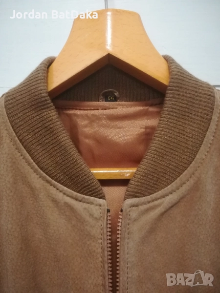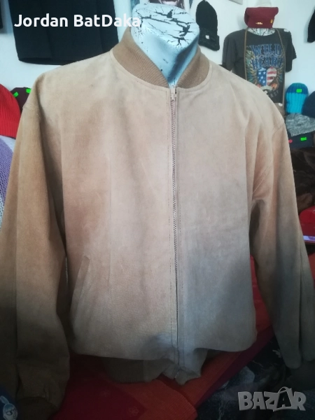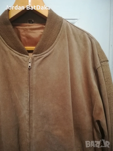 Страхотно кожено яке тип бомбър, ала Мел Гибсън, Пачино и Де Ниро. Цветът е светло киви, но излиза различно на снимките. Размери - подмишници 66см, от рамо до долен ръб 65см и дължина ръкав 62см. Стандартен М размер, но е идеално за една идея по пълен мъж. Якето е абсолютен бомбастик, но с един малък дефект, може би драснато от чанта, но почти незабележимо. Препоръчвам!