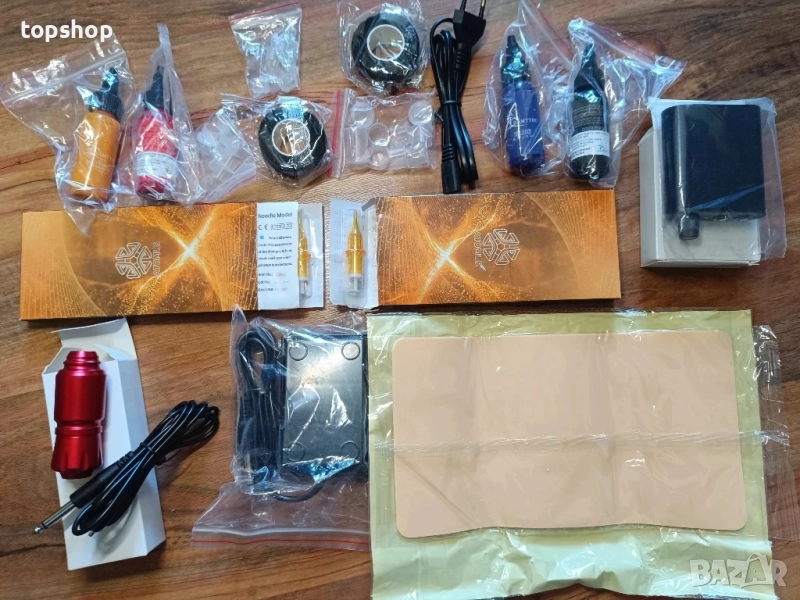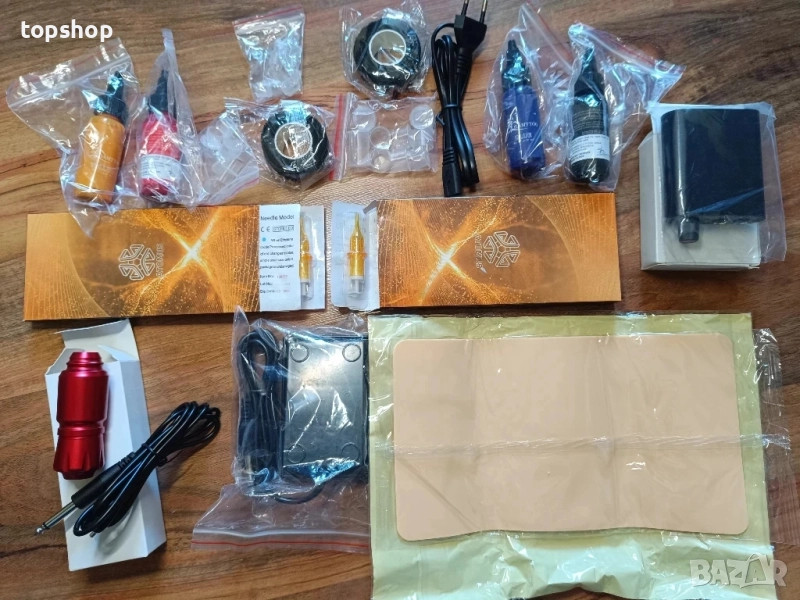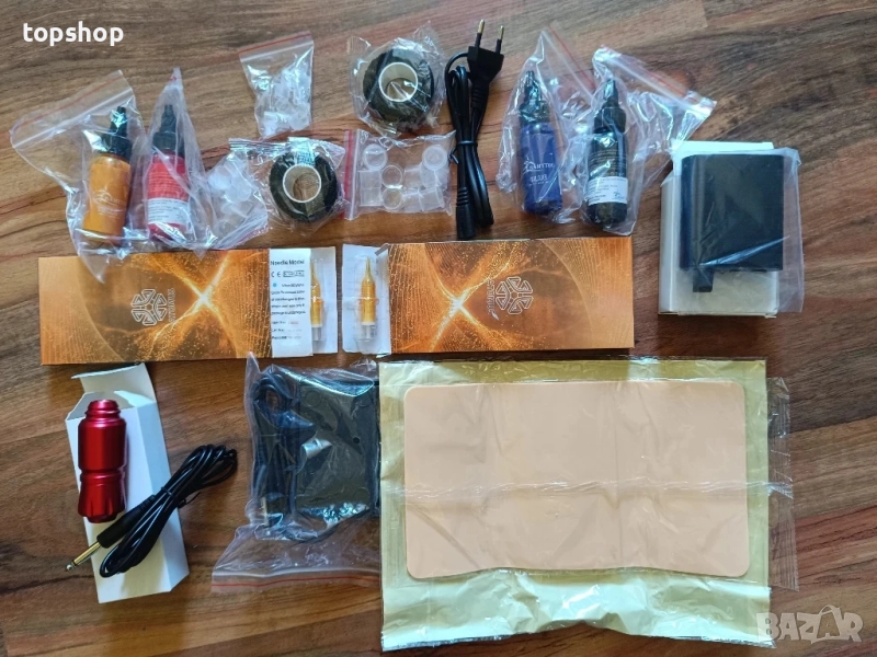 ЧИСТО НОВ комплект за татуировки, машина за татуировки, комплект ротационни писалки с патрони, захра