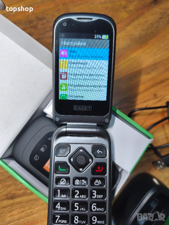 Нов SAIET - Link 4+ Умен мобилен телефон за възрастни хора НА БЪЛГАРСКИ - Големи бутони и букви...