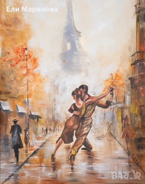 този страстен танц. Произведението е ново, на платно, размер 50/40 см.