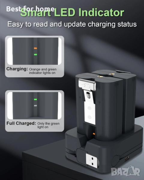 ИНТУИТИВНИ LED ИНДИКАТОРИ: Нашият комплект от 2 пръстеновидни батерии е снабден с интуитивни LED индикатори, показващи състоянието на зареждане чрез оранжева и зелена светлина. Когато и оранжевата, и зелената светлина светят, батерията се зарежда. Когато свети само една зелена светлина, батерията е напълно заредена. Бъдете информирани без усилие с нашия ясен и сбит дисплей за състоянието на зареждане.