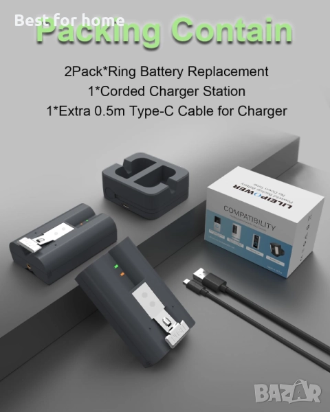КАКВО ЩЕ ПОЛУЧИТЕ: 2 бр. *6040mAh резервни пръстеновидни батерии, 1 * двойна зарядна станция, 1 * USB кабел за зареждане, 1 * ръководство за потребителя