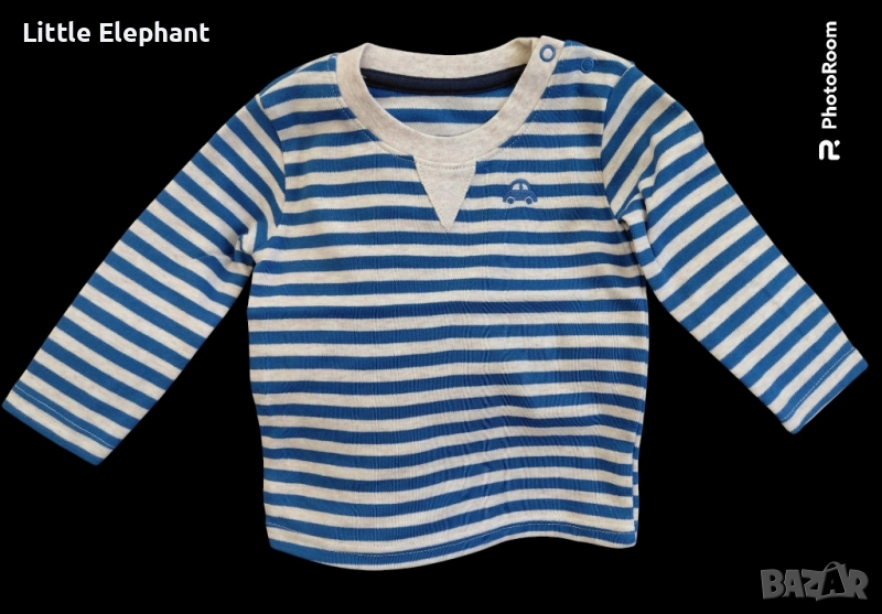 Блузка с дълъг ръкав за 6-9 мес момченце синьо райе"Tiny little car",Англия/нова → Обява 51590772