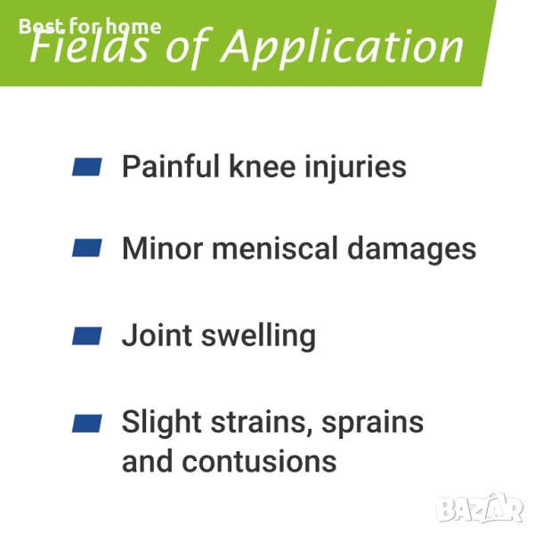 Специфични приложения на продукта Патела, облекчаване на болката, опора на коляното, подуване