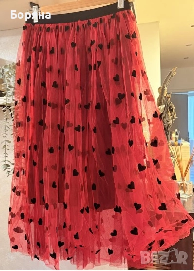Много нежна розовова пола тюл, размер S/M, цена 70лв. Червена пола тюл, със сърчица, размер S/M, цена 30 лв.