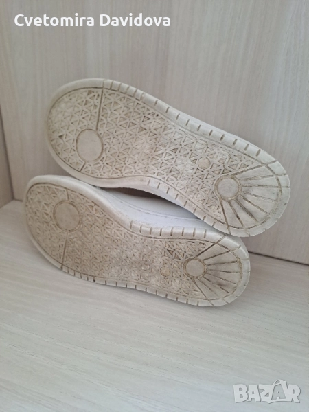 Обувките са носени пролетта само и умаляха. На снимките се вижда къде са се напукали и кожата се е обелила (от вътрешната страна към петичката). Обувките са изпрани и са готови за носене. За повече въпроси ми пишете.