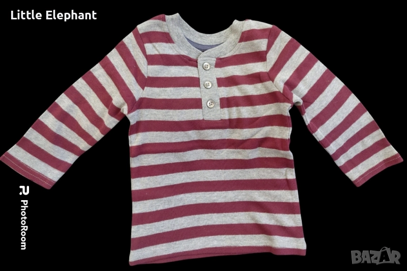 Блузка с дълъг ръкав за 12-18 месеца райе сиво и бург,копченца,Англия/нова → Обява 51591395