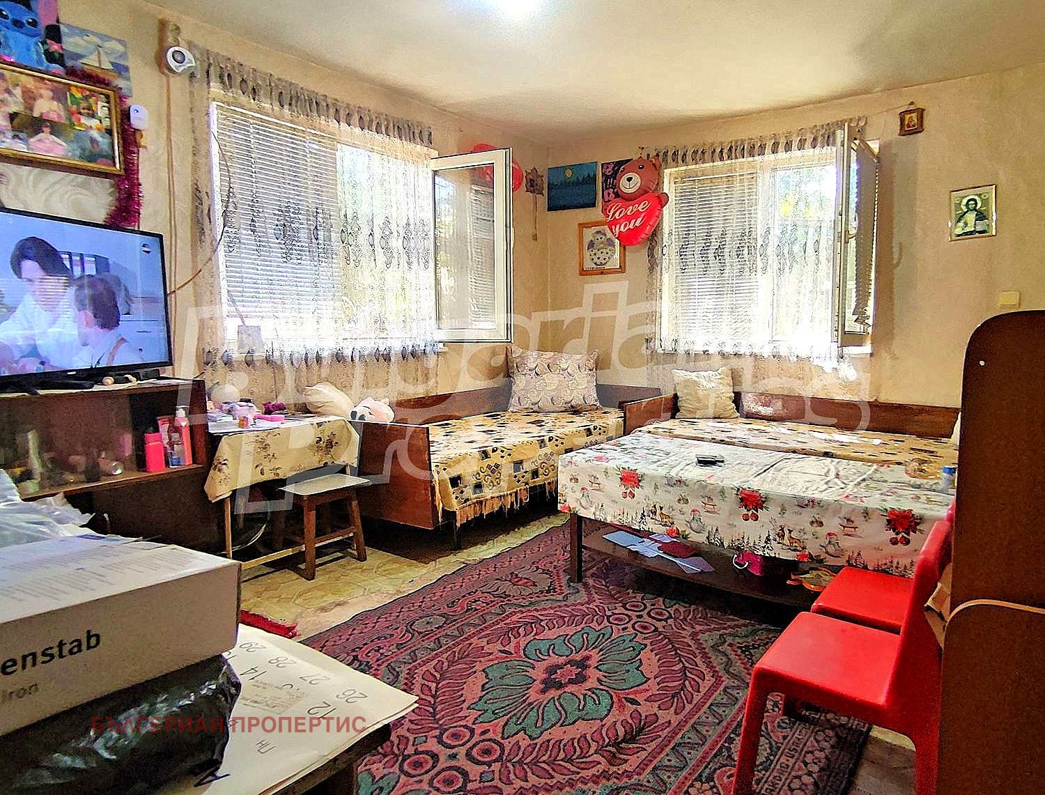 Три стаи с подови настилки - балатум. Стените са боядисани и с тапети.