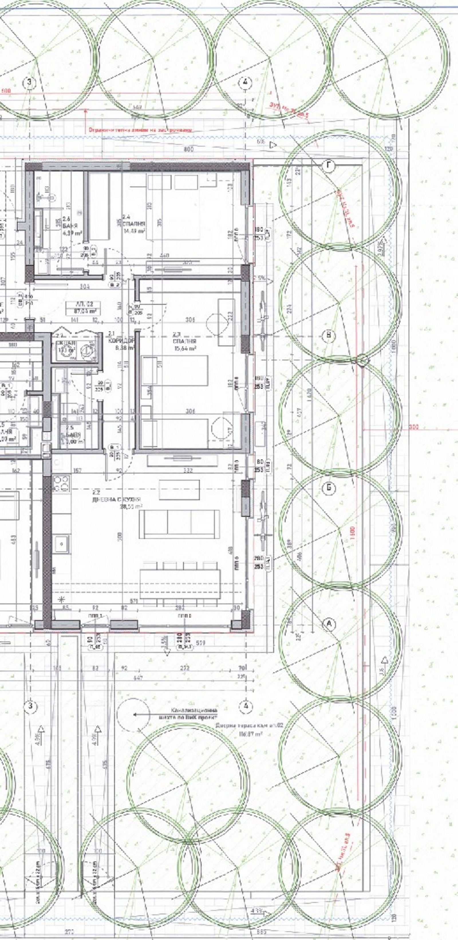Носеща конструкция: монолитна стоманобетонна, етажни плочи - безгредови;