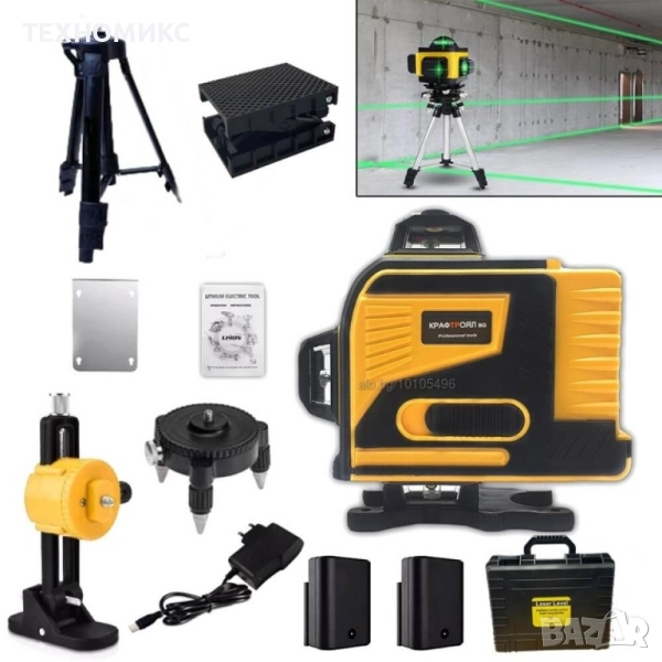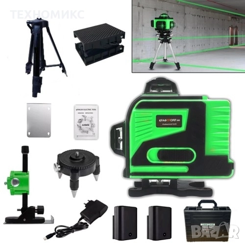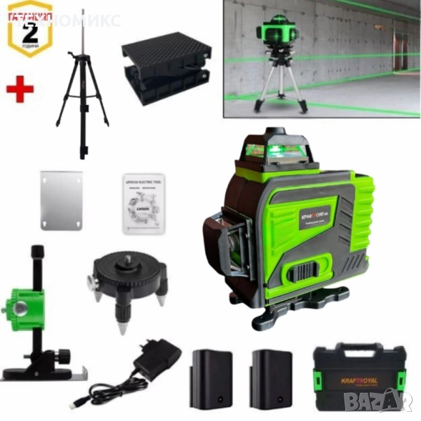 4D Лазерен Нивелир Kraft Royal с 16 Линии – Пълен Компелкт с Тринога и Аксеосари